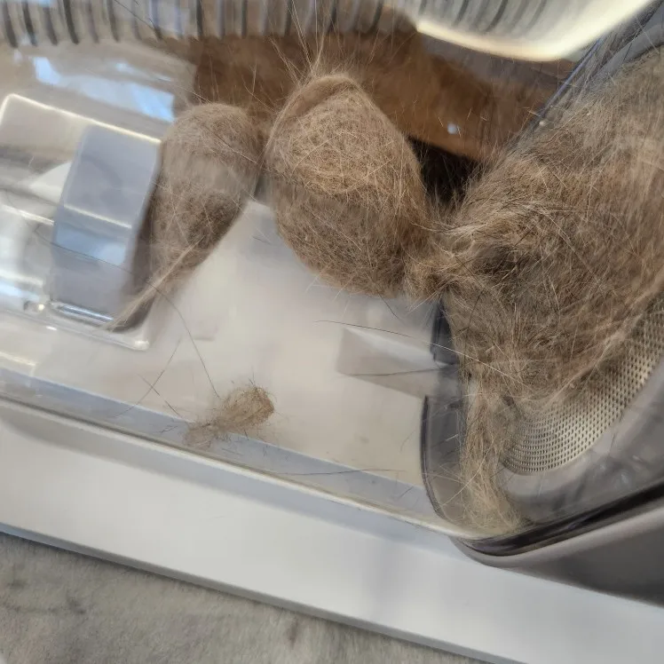 Watch how the 2.3L vacuum cup instantly pulls loose fur off your pet and keeps your home clean.
