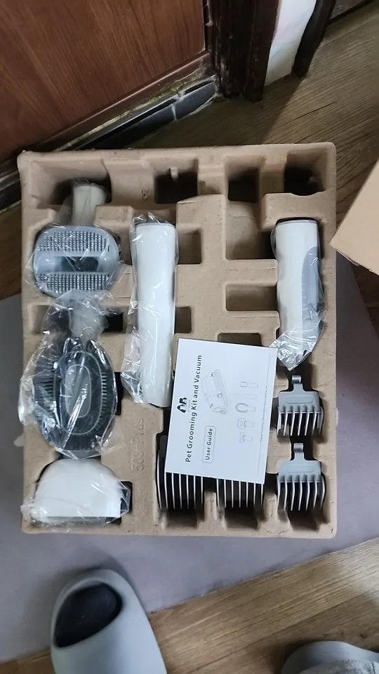 The kit includes a slicker brush, deshedding comb, clippers with 4 guard lengths, a fabric/sofa nozzle and a flexible hose. The clipper guards help you keep a safe, even length without cutting too short. Always move slowly in the direction of hair growth and avoid using clippers on sensitive areas such as ears, eyes and paws.