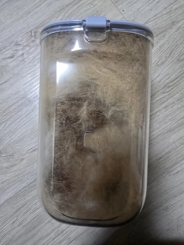The 2.3L dust cup captures almost all loose fur while you brush or trim, so there is very little left to sweep. Most owners only need to empty the canister after several full grooming sessions, depending on pet size and shedding. The cup disconnects in one click and can be emptied and reattached in seconds.
